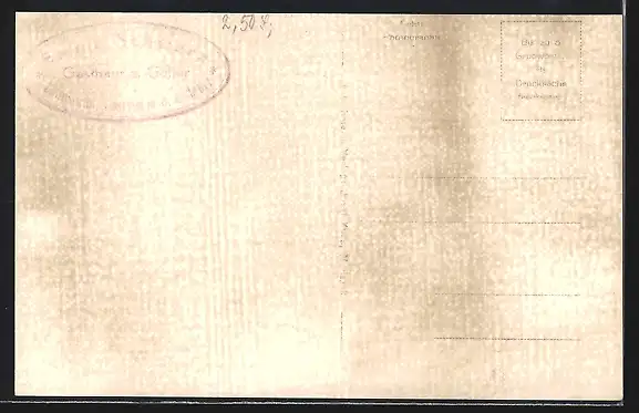 Personenbezogene Daten auf der Rückseite der Karte wurden durch blauen Textmarker unkenntlich gemacht. Die blauen Stellen sind auf die Vorderseite durchgeweicht und wirken sich negativ auf das Postkartenfoto aus