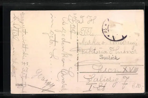alte Ansichtskarte, gelaufen, Briefmarke entfernt, rückseitig Oberflächenschaden, Eckknick re. oben, guter Zustand