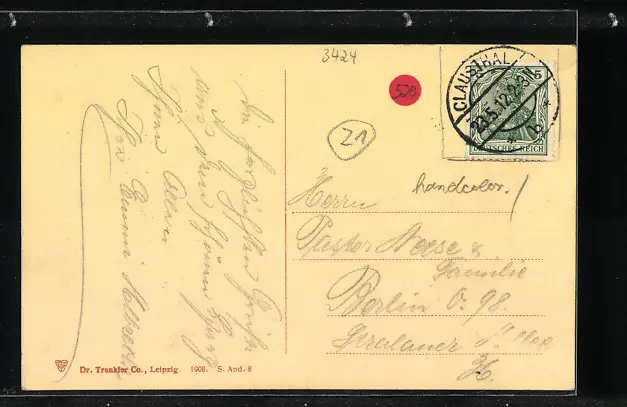 alte Ansichtskarte, gelaufen 1912, rückseitig Klebe- und Papierreste, guter Zustand
