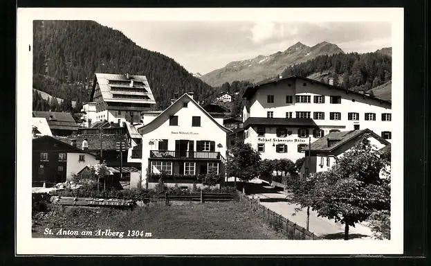 AK St. Anton, Ortsansicht mit Gasthof Schwarzer Adler