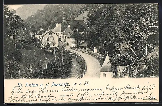 AK St. Anton a. d. Jessnitz, Ortsansicht mit Kirche