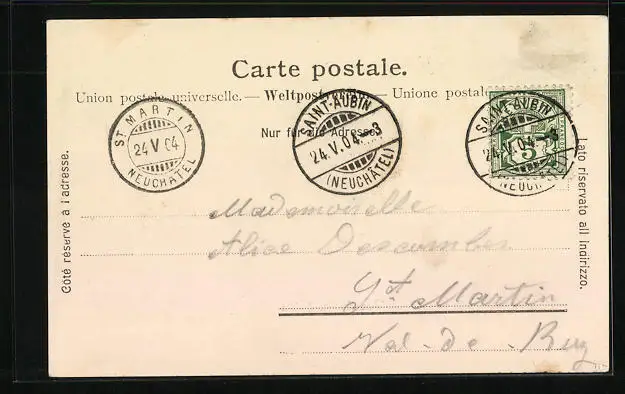 alte Ansichtskarte, gelaufen 1904, guter Zustand