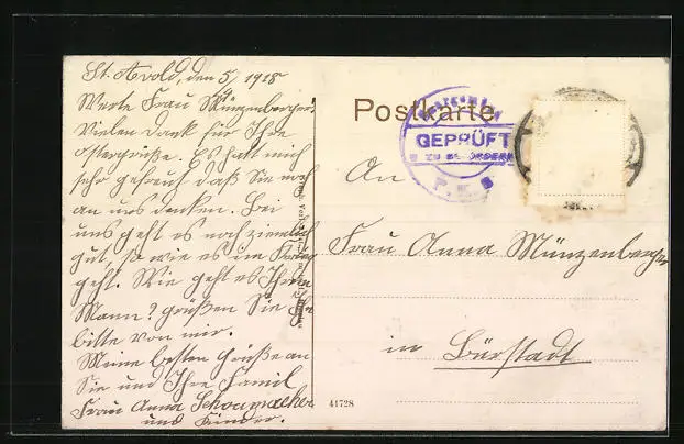 alte Ansichtskarte, gelaufen 1918, Briefmarke entfernt, Stempelspur, guter Zustand