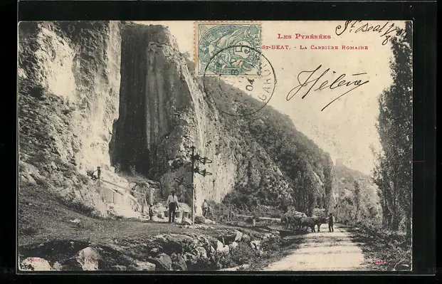 AK St-Beat, La Carriere Romaine, Steinbruch, Ochsengespann