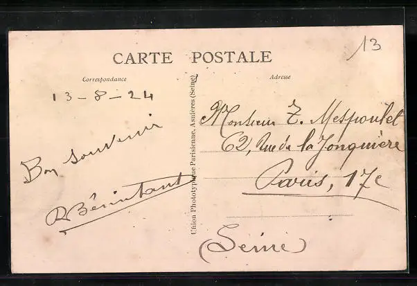 alte Ansichtskarte, gelaufen, Bugspur oben links, guter Zustand