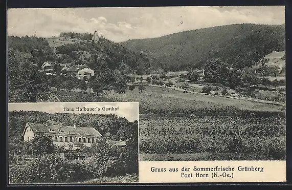 AK St. Bernhard-Frauenhofen, Grünberg, Hans Hofbauers Gasthof, Ortschaft von weitem
