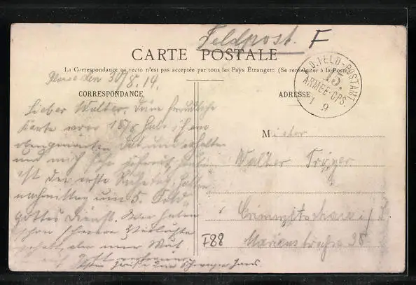 alte Ansichtskarte, gelaufen 1914 als Feldpost, guter Zustand