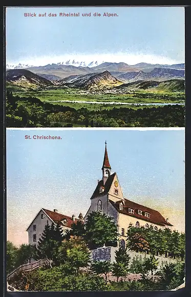 AK St. Chrischona, Blick auf das Rheintal und die Alpen