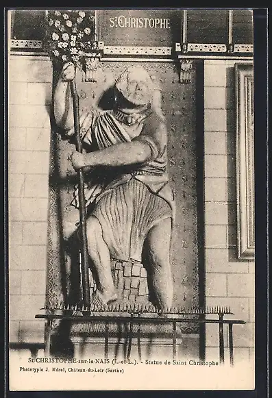 AK St-Christophe-sur-le-Nais, Statue de Saint Christophe