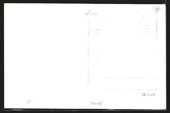 Personenbezogene Daten auf der Rückseite der Karte wurden durch blauen Textmarker unkenntlich gemacht. Die blauen Stellen sind auf die Vorderseite durchgeweicht und wirken sich negativ auf das Postkartenfoto aus