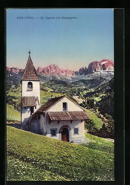 AK St. Cyprian, Kapelle mit Rosengarten