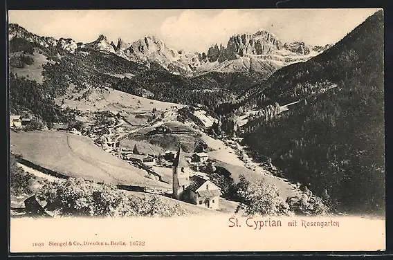 AK St. Cyprian, Ortsansicht mit Rosengarten