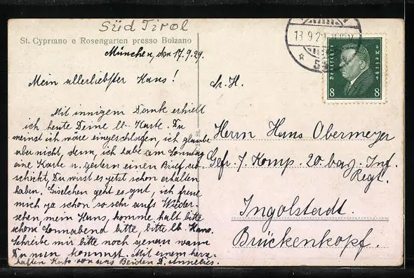 alte Ansichtskarte, gelaufen 1929, guter Zustand