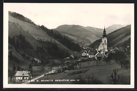 AK St. Erhard b. Mixnitz, Ortsansicht mit Kirche