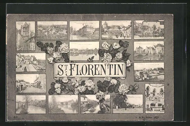 AK St. Florentin, Vue Generale, l`Eglise, Interieur de l`Eglise & le Pont