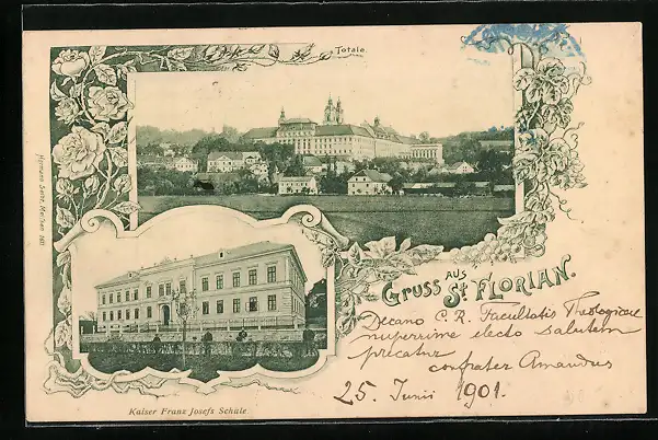 AK St. Florian, Kaiser Franz Josefs-Schule, Totalansicht