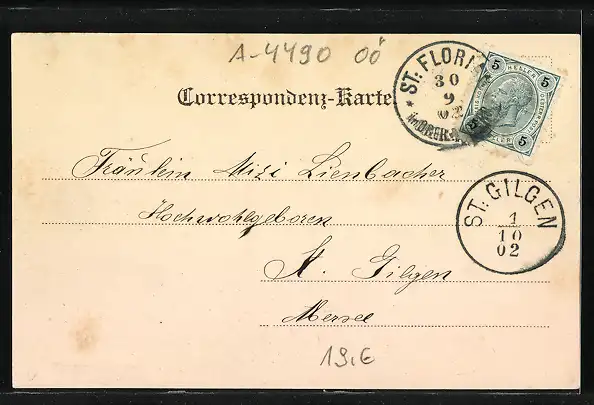 alte Ansichtskarte, gelaufen 1902, guter Zustand