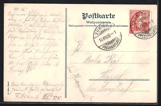 alte Ansichtskarte, gelaufen 1908, guter Zustand