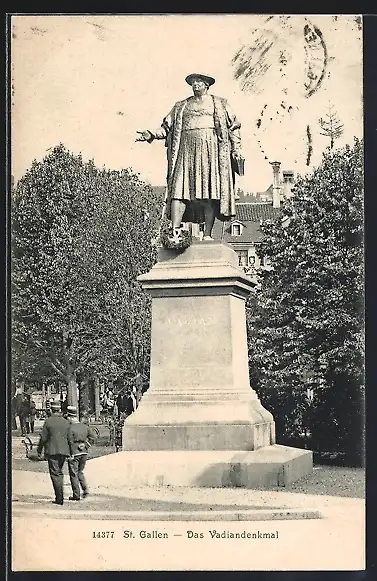 AK St. Gallen, Das Vadiandenkmal mit Passanten