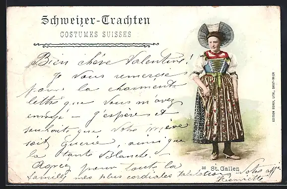 AK St. Gallen, Frau in Schweizer Tracht