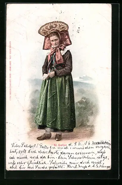AK St. Gallen, Frau in Schweizertracht