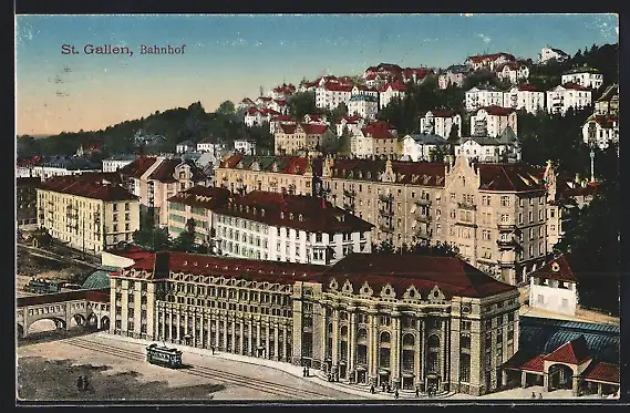 AK St. Gallen, Ortsansicht mit Bahnhof