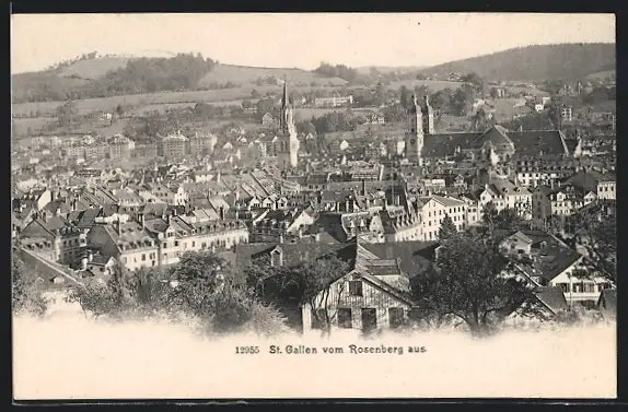 AK St. Gallen, Ortsansicht vom Rosenberg aus