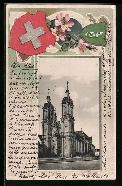 AK St. Gallen, Partie an der Kathedrale, Wappen