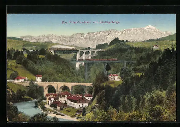 AK St. Gallen, Sitter-Viadukte mit Säntisgebirge