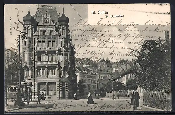 AK St. Gallen, St. Gallerhof mit Strassenbahn