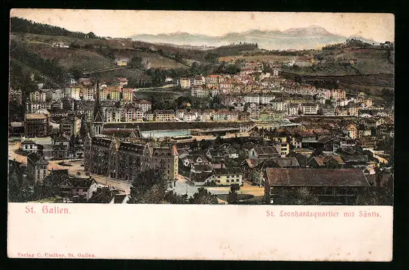 AK St. Gallen, St. Leonhardsquartier mit Säntis