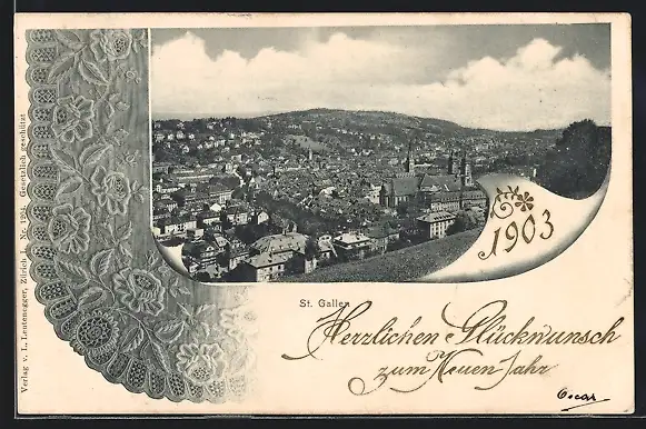 AK St. Gallen, Stadtbild aus der Vogelschau