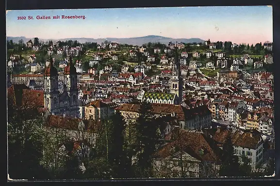 AK St. Gallen, Teilansicht mit Kirche und Rosenberg