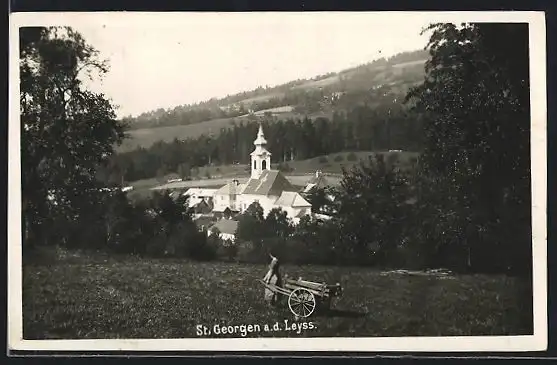 AK St. Georgen an der Leys, Ortspartie mit Kirche