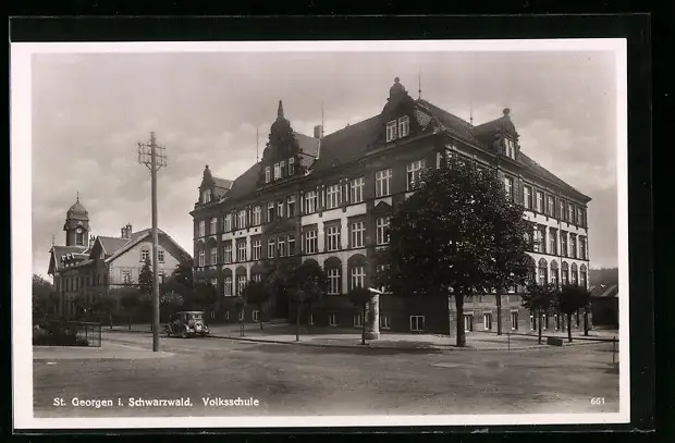 AK St. Georgen i. Schwarzwald, Strassenpartie an der Volksschule