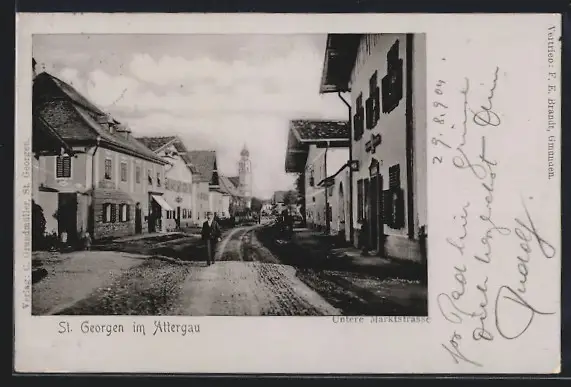 AK St. Georgen im Attergau, Untere Marktstrasse mit Kirche