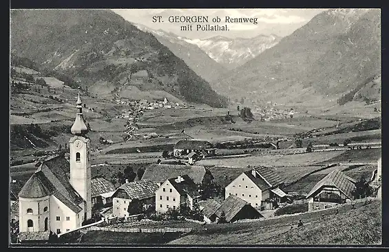 AK St. Georgen ob Rennweg, Teilansicht mit Kirche und Pöllathal