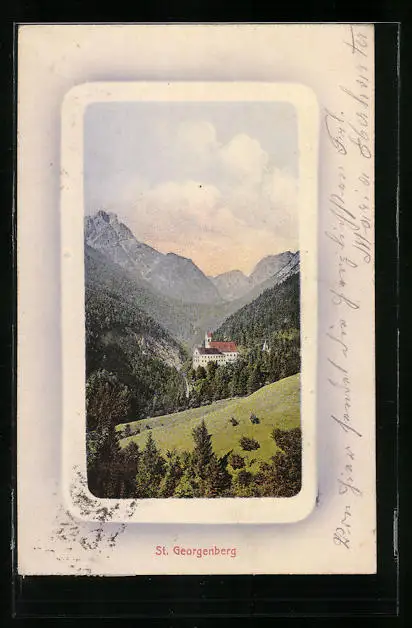 AK St. Georgenberg, Ortsansicht mit Waldlandschaft aus der Ferne