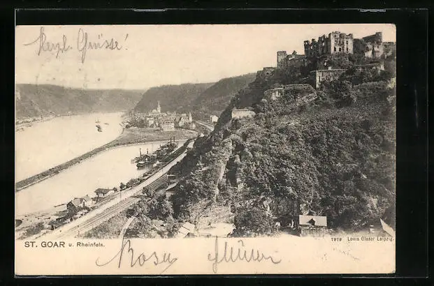 AK St. Goar, Blick auf die Ruine Rheinfels