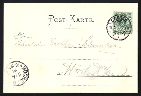alte Ansichtskarte, gelaufen 1898, guter Zustand