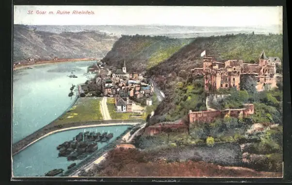 AK St. Goar am Rhein, Totale mit Ruine Rheinfels
