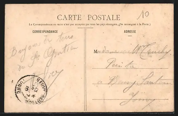 gelaufen 1910, kleiner Einriss oben mittig, guter Zustand