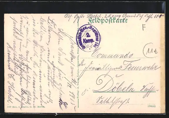 gelaufen 1915, rückseitig Klebe- und Papierreste, guter Zustand