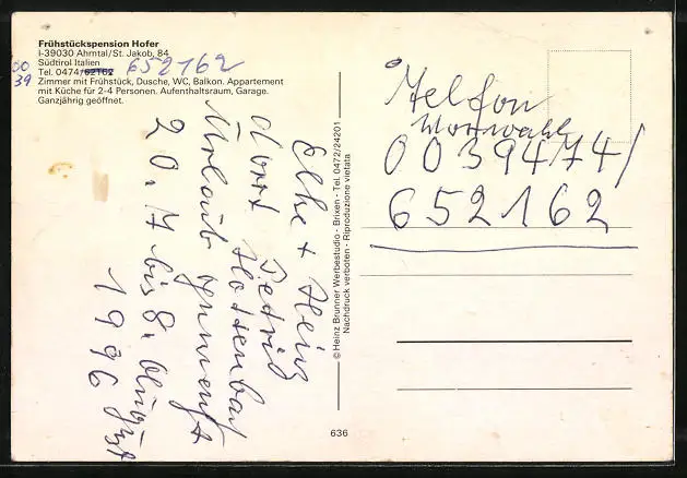 AK St. Jakob /Ahrntal, Frühstückspension Hofer