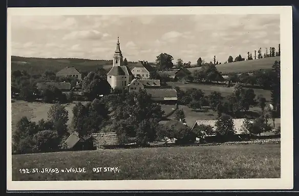 AK St. Jakob a. Walde, Ortspartie mit Kirche