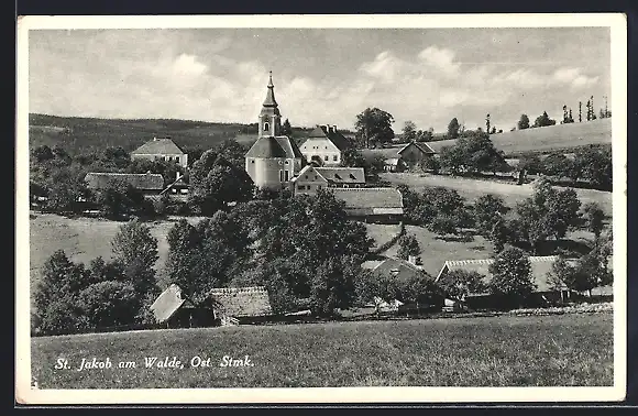 AK St. Jakob am Walde, Ortspartie mit Kirche