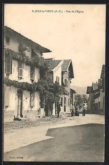 AK St-Jean-le-Vieux /B.-P., Rue de l`Eglise, Strassenpartie