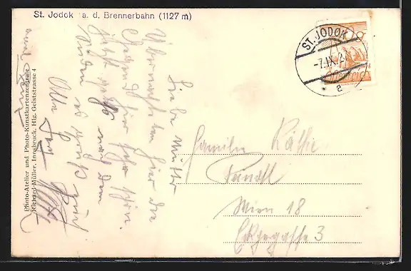 AK St. Jodok a. d. Brennerbahn, Ortspartie mit Kirche