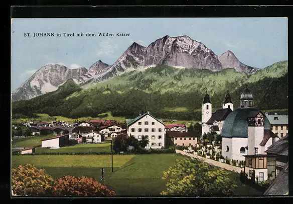 AK St. Johann, Ortspartie mit dem Wilden Kaiser