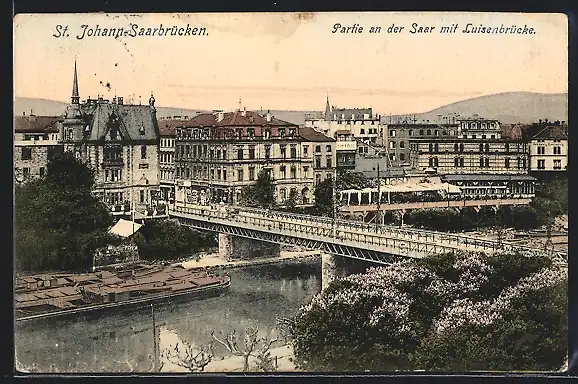 AK St. Johann-Saarbrücken, Saarpartie mit Luisenbrücke